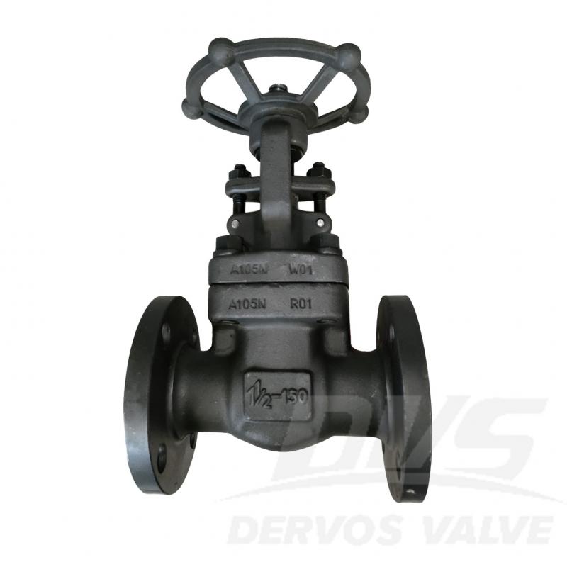 Задвижка из кованой стали диаметром 1-1/2 дюйма и грузоподъемностью 150 фунтов изготовлена в соответствии со стандартом API 602. Корпус задвижки изготовлен из стали ASTM A105N. Она имеет следующие конструктивные особенности: уменьшенный диаметр, сплошной клин, болтовое крепление крышки. Способ соединения – RF (радиально-натяжное). Управление осуществляется с помощью маховика.