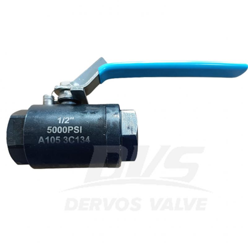 Кран с плавающим шаром 1/2”500 фунтов/кв. дюйм изготовлен в соответствии со стандартом BS5351. Корпус клапана изготовлен из материала ASTM A105. Он имеет следующие конструктивные характеристики: полнопроходной, двухкомпонентный, плавающий шар, огнестойкий, антистатичный, с противовыбросовым штоком. Тип соединения – NPT. Управление осуществляется с помощью рычага.