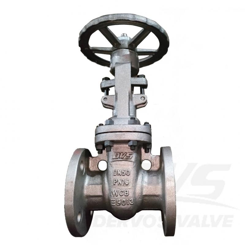 Задвижка DN50 PN16 из литой стали изготовлена в соответствии со стандартом EN1984. Корпус задвижки изготовлен из стали ASTM A216 WCB+STL. Конструкция задвижки выполнена по технологии «болтовое крепление» с гибким клином. Тип соединения соответствует стандарту EN1092-1 B1. Управление осуществляется с помощью маховика.